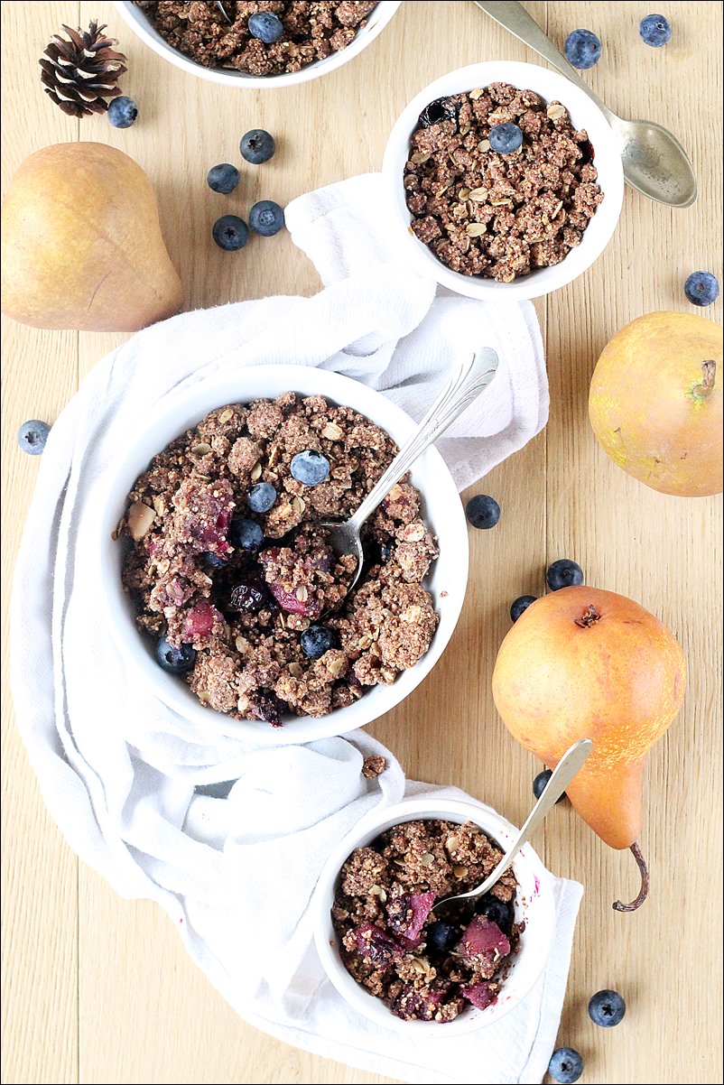 Crumble di pere e mirtilli vegan